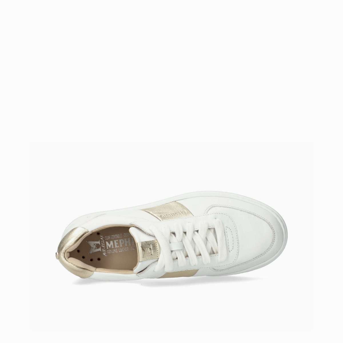 Ove udobne tenisice klasičan su dio garderobe i bez napora se slažu sa svakom odjevnom kombinacijom. SHOCK-ABSORBER u potplatu, zajedno s uklonjivim uloškom s tehnologijom SOFT-AIR, minimizira udarce uz održavanje zdrave unutarnje klime. Tehnologija AIR-RELAX podržava prirodnu anatomiju stopala, pomažući u sprječavanju urušavanja svoda. Dizajn s vezicama omogućuje precizno podešavanje i optimalnu potporu stopalu. Kožna podstava osigurava izvrsnu higijenu stopala. Ovaj bijeli ženski model izrađen je od glatke kože po cijeloj površini stopala, a naglašene su glatkom zrnastom kožom s metalik efektom sa strane i na peti.